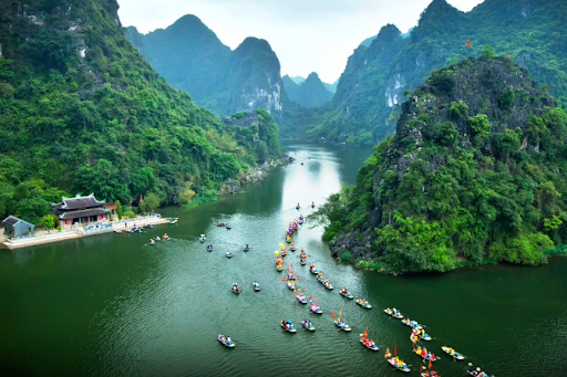 Khám phá Tràng An hoặc Tam Cốc, thăm chùa Bái Đính – ngôi chùa lớn nhất Đông Nam Á, ngắm cảnh núi đá vôi hùng vĩ.